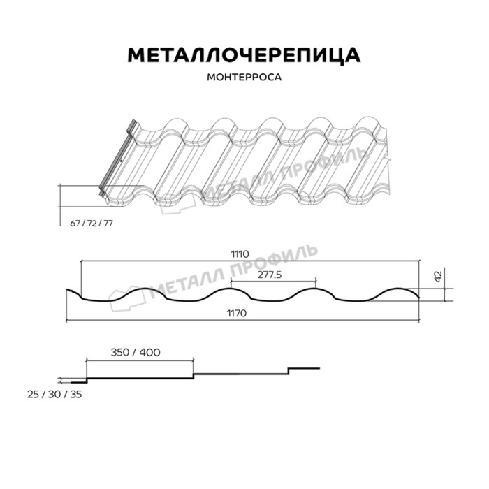 Металлочерепица Металл-Профиль Монтерроса-X 0,5 PURMAN® RAL 5005 Синий насыщенный Показать информацию