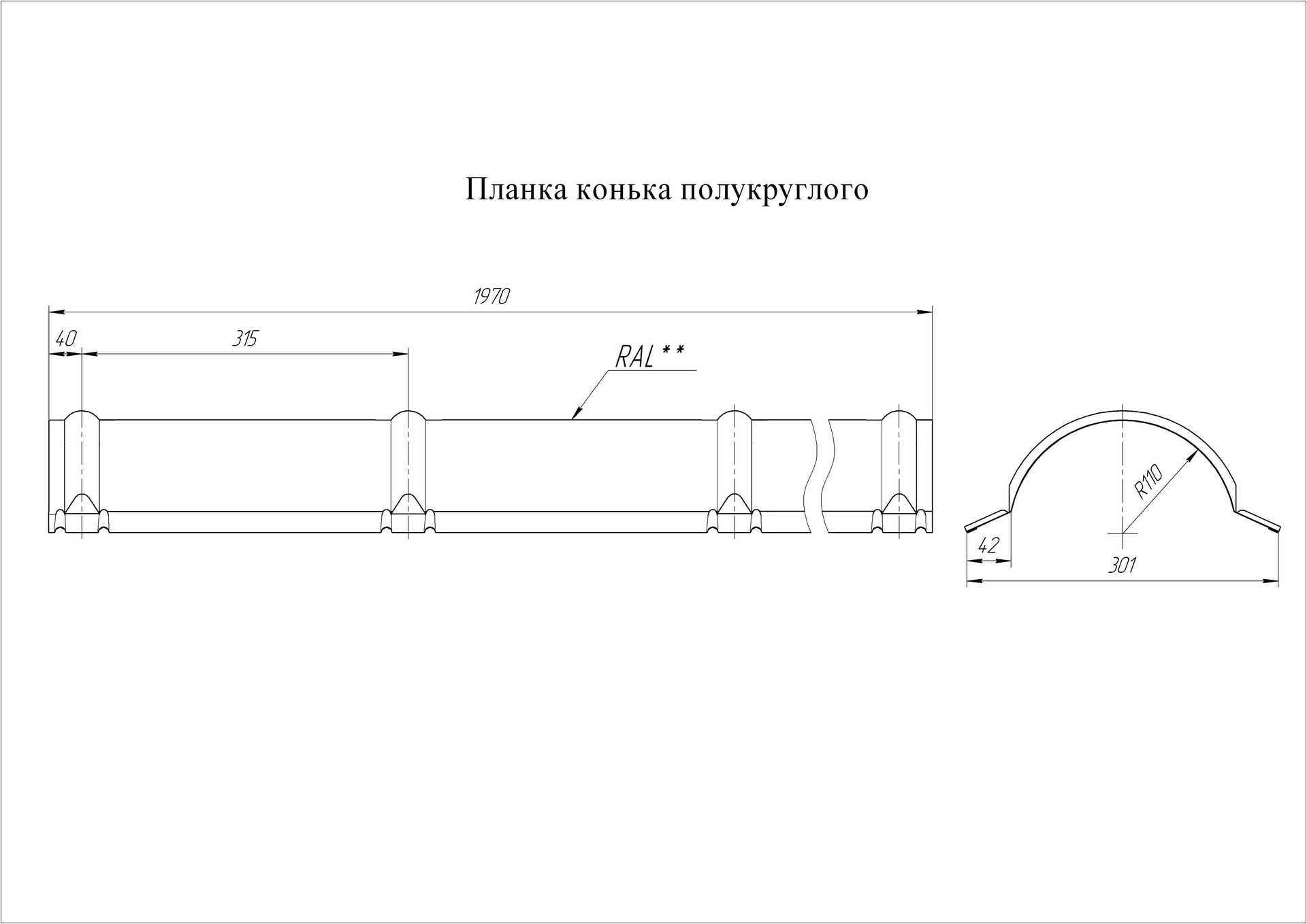 Планка конька полукруглого 0,5 Drap RAL 6005 зеленый мох