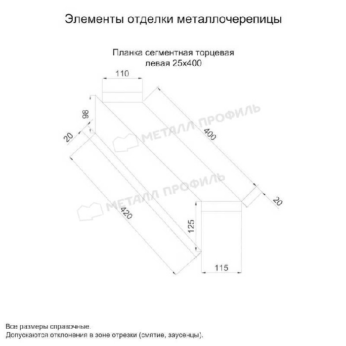 Планка сегментная торцевая левая 400 мм NormanMP (ПЭ-01-3020-0.5) Показать информацию